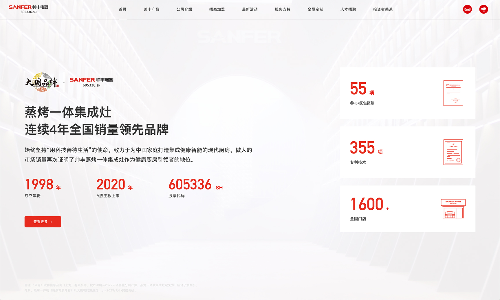 浙江帅丰电器股份有限公司成立于1998年,是一家集研发、制造、销售为一体的高新技术企业。产品线涵盖集成灶、集成水槽、洗碗机、热水器、整厨、全屋定制等,总部位于浙江省绍兴市嵊州市经济开发区。